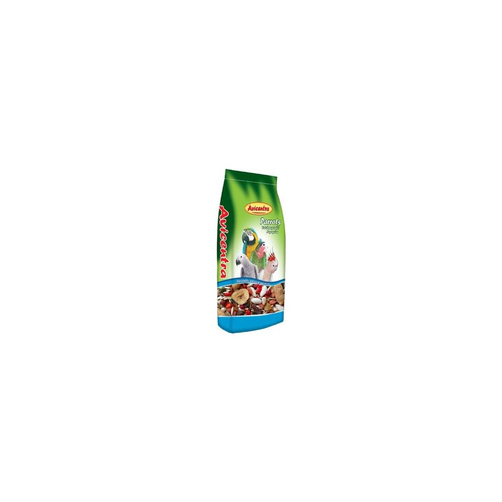 složení: slunečnice (bílá, žíhaná), safrol, ovoce (banány, ananas, rozinky), ořechy (burské ořechy, cedrové ořechy), oves bezpluchý, pohanka, extrudované granule s ovocem, paddy rýže, hrachové vločky, dýně, ostropestřec mariánský, konopné semeno, čirok (bílý, červený), oves, kukuřice, kukuřičné vločky, mrkev, chilli papričky.