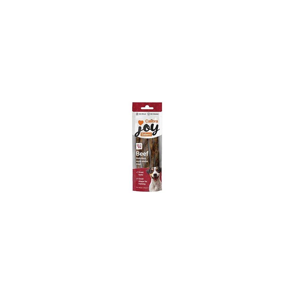 Lahodná pochoutka v podobě salámku. Salámek lze snadno rozdělit na kousky o menší velikosti, je proto vhodný pro trénink. Tato hovězí receptura je bez pšenice a bez obsahu kuřete. Doplňkové krmivo pro psy.