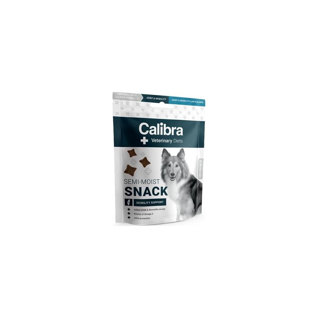Receptura Mobility Support Semi-moist Snack je kompatibilní také s veterinární dietou Calibra VD Dog Joint & Mobility a Calibra VD Dog Joint & Mobility Low Calorie.