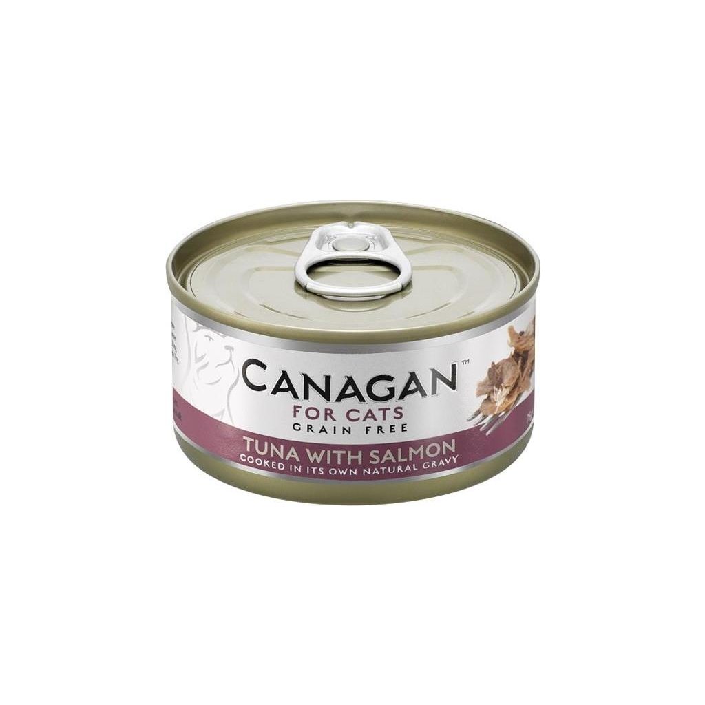 Canagan Cat Tuna with Salmon – je kompletní krmivo pro kočky. Vyrobené je z masa z tuňáků, kteří jsou volně lovení metodou šetrného odchytu na udici. Tuňáka doplňují lahodné kousky lososa - vše je šetrně vařené ve vlastní šťávě pro zachování vysoké výživové hodnoty krmiva.