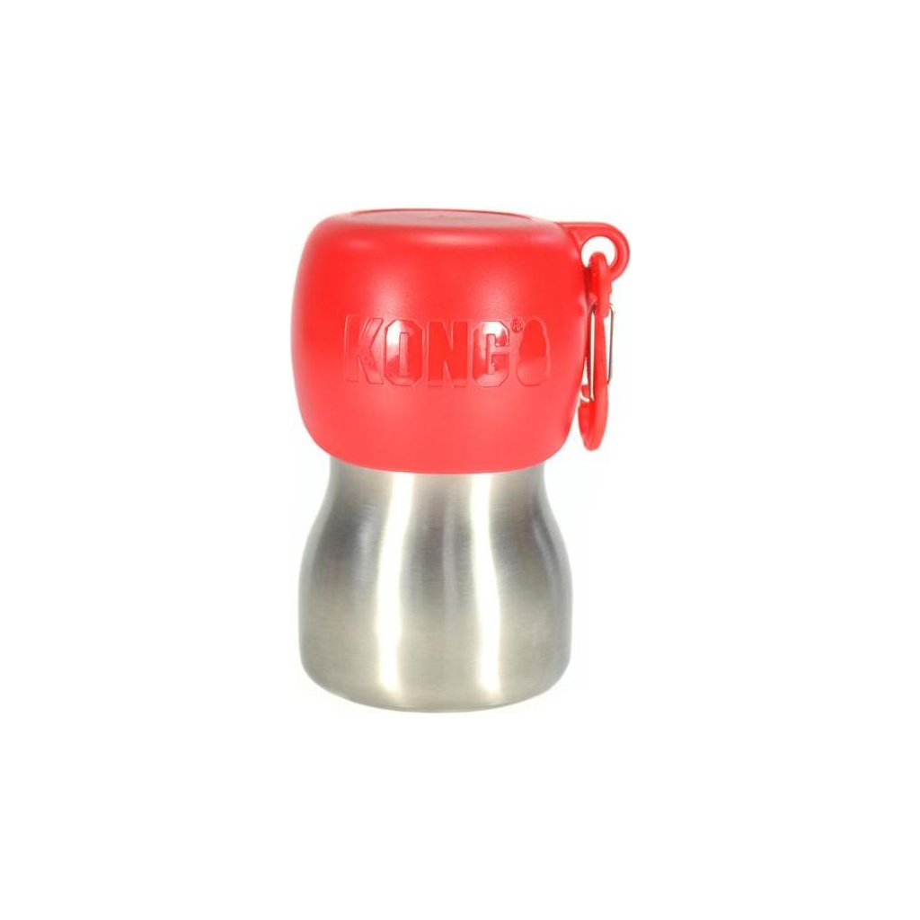 Každý pes potřebuje dostatečný přísun pitné vody – na dlouhé procházce, při cestování, po venkovní aktivitě, a to zvláště za horkých dnů. Láhev KONG H2O se pro dodržení pitného režimu dokonale hodí. Snadno se přenáší a díky karabině lze připnout např. na batoh. Vzhledem k objemu je cestovní láhev vhodná pro malé až středně velké psy. Je vyrobena z nerezové oceli, odolná proti vytečení a 100% recyklovatelná. Šroubovací uzávěr z netoxického polypropylenového materiálu lze použít jako napájecí misku.