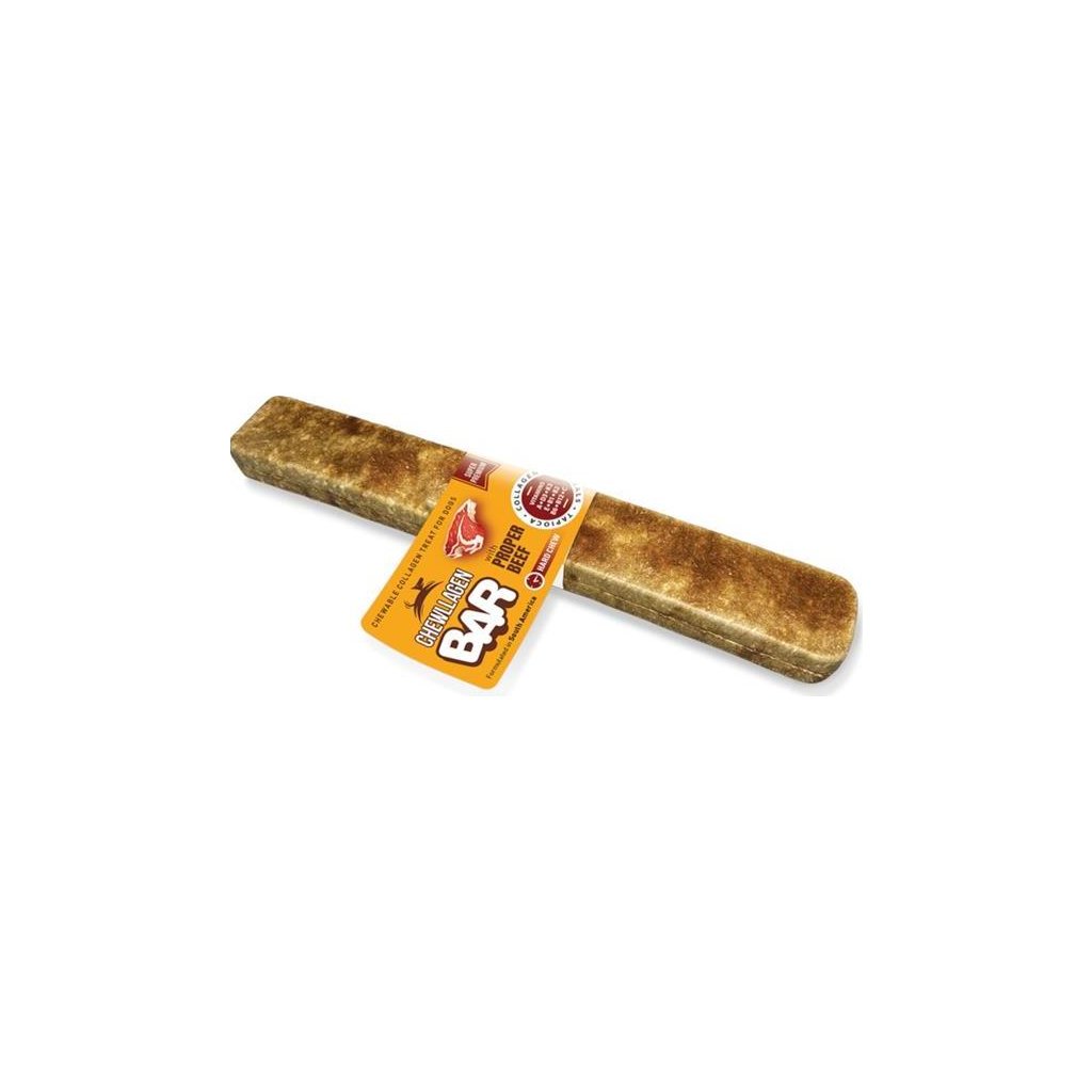 Odolná žvýkací tyčinka Chewllagen BAR Beef je speciálně navržená pro podporu zdraví kloubů, mobility a celkové pohody psů. Obsahuje vysoce kvalitní hydrolyzovaný kolagen, který hraje klíčovou roli při udržování zdraví pojivových tkání – tedy kloubů, kůže a šlach. Bezobilná (grain-free), bezlepková tyčinka je navíc obohacená o důležité vitamíny (A, C, E, D3, K3, B1, B2, B6 a B12) a minerály, neobsahuje žádný přidaný cukr ani GMO a má nízký obsah tuku, což z ní činí ideální pochoutku i pro psy se sklonem k nadváze.