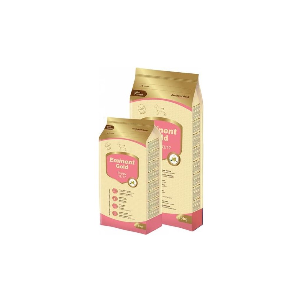 Eminent GOLD Puppy je kompletní krmivo pro štěňata, březí a kojící feny malých a středních plemen. Výživa štěňat malých a středních plemen je odlišná od štěňat velkých a obřích plemen. Náročné požadavky na obsah kvalitních, dobře stravitelných bílkovin, důležitých pro správný růst a vývoj štěněčího organismu, pokrývá vysoký obsah kuřecího masa a hydrolyzovaných jater. Starodávné bezlepkové plodiny amarant a pohanka, spolu s MOS a FOS, přispívají ke správné funkci trávicího a kardiovaskulárního systému a jater. Vaše štěně je tak plné energie a ve vynikající kondici.