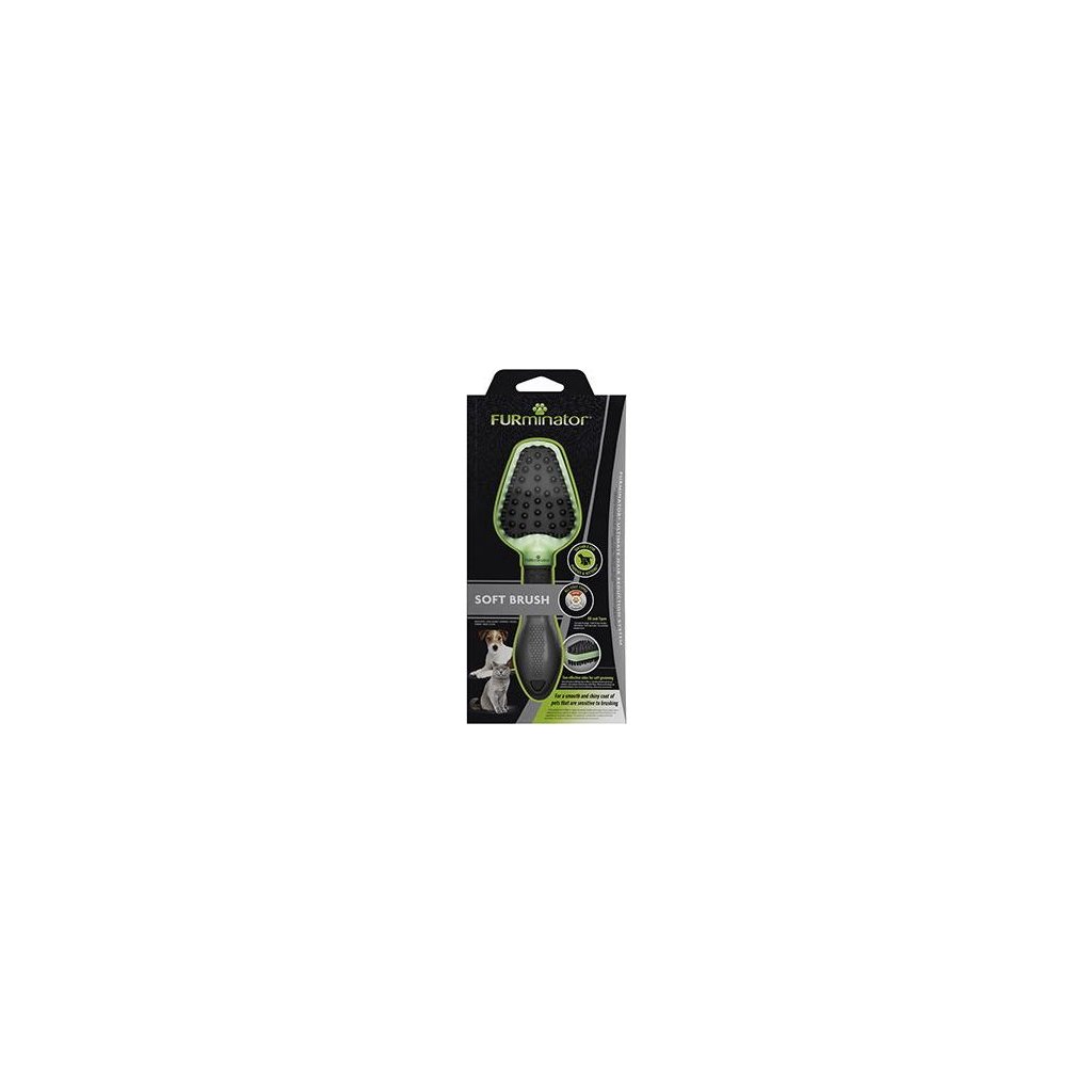 Udělejte z péče o srst jemný zážitek s naším FURminator® Soft Brush kartáčem navrženým pro krátkosrsté psy a kočky, zejména pro ty, kteří jsou citliví na kartáčování. Díky své jemnosti jej lze použít také u štěňat a koťat, aby byla šetrně seznámena s pravidelnou péčí o srst. Tento oboustranný kartáč má na jedné straně měkké silikonové výstupky, které masírují kůži vašeho mazlíčka a zároveň odstraňují uvolněnou srst a podporují hladkou a lesklou srst. Měkké a pružné nylonové štětiny na druhé straně slouží k jemnému a kontrolovanému kartáčování, které pomáhá odstranit lupy, prach a nečistoty. Pro maximální pohodlí a snadné použití je náš Soft Brush vybaven osvědčenou ergonomickou rukojetí. Protože každý krátkosrstý mazlíček si zaslouží jemnou péči!