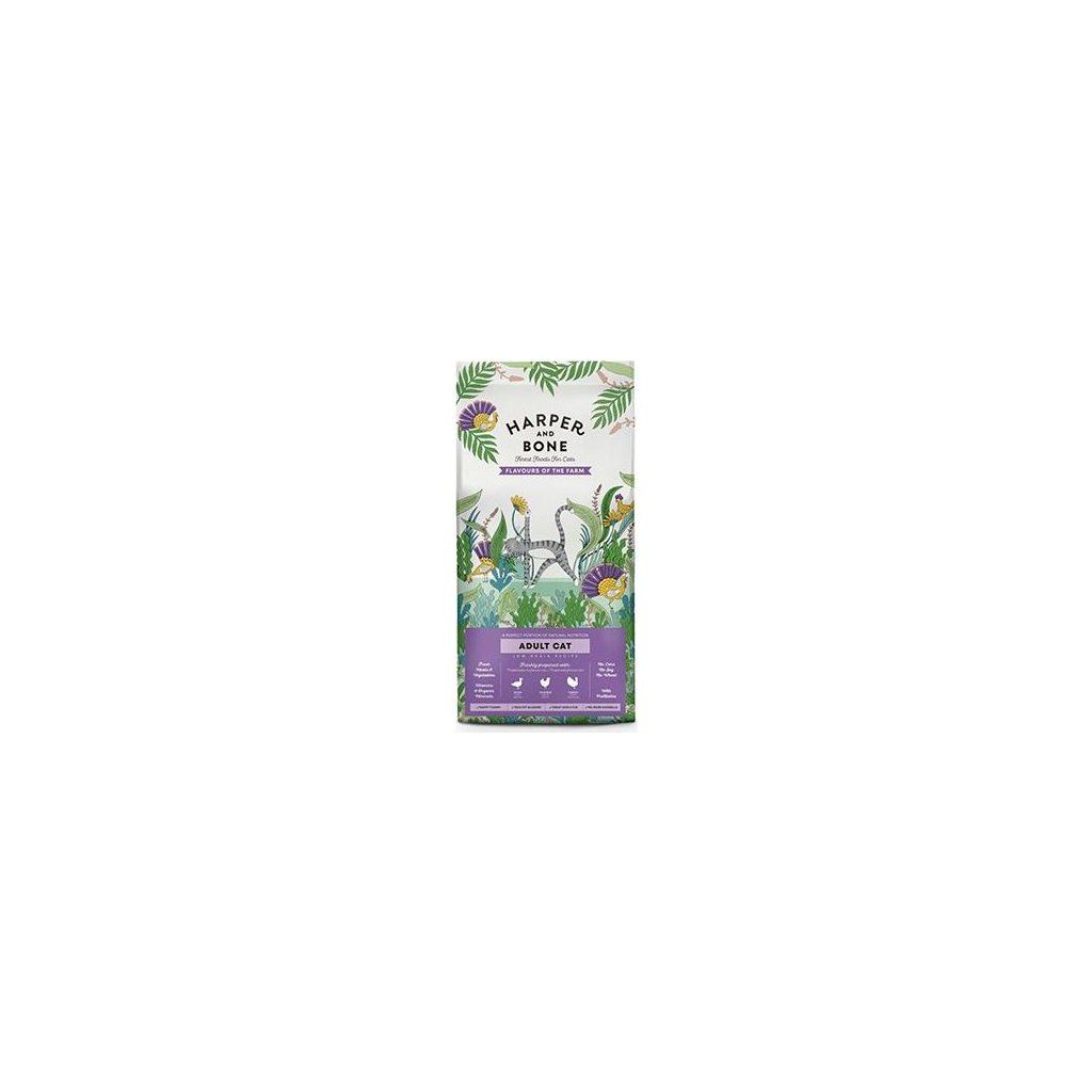 Harper and Bone Cat Adult příchutě farmy složené pouze z nejkvalitnějších surovin s vysokým podílem masa, přídavkem superpotravin a čerstvé zeleniny, zaručující prospěšné živiny a přirozenou chuť pro dokonale vyváženou výživu.