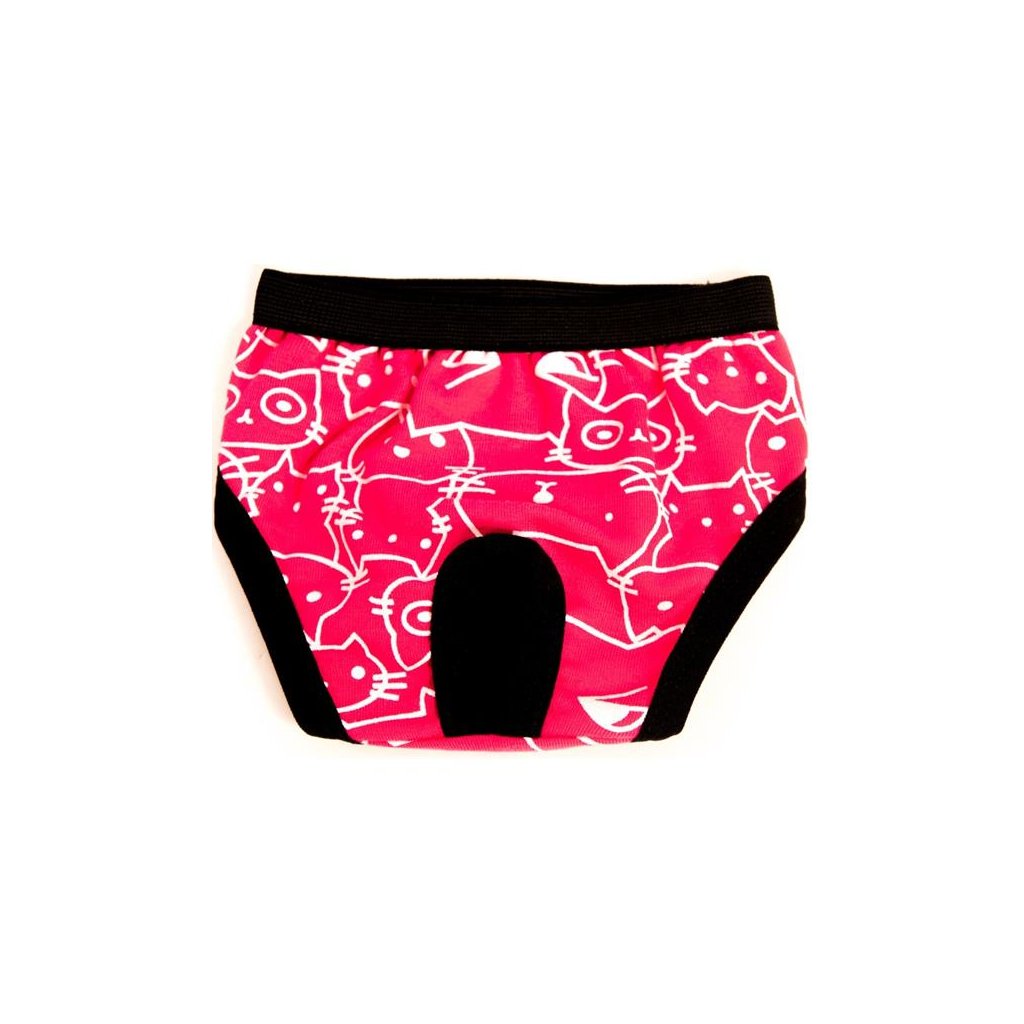 Díky pružným okrajům a v pase našité měkké gumě se snadno a rychle oblékají i svlékají, perfektně sedí a nijak fenku neomezují v pohybu. Samozřejmostí je otvor pro ocásek a uvnitř síťka k zachycení vložky.