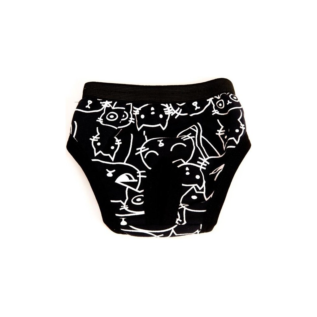 Díky pružným okrajům a v pase našité měkké gumě se snadno a rychle oblékají i svlékají, perfektně sedí a nijak fenku neomezují v pohybu. Samozřejmostí je otvor pro ocásek a uvnitř síťka k zachycení vložky.