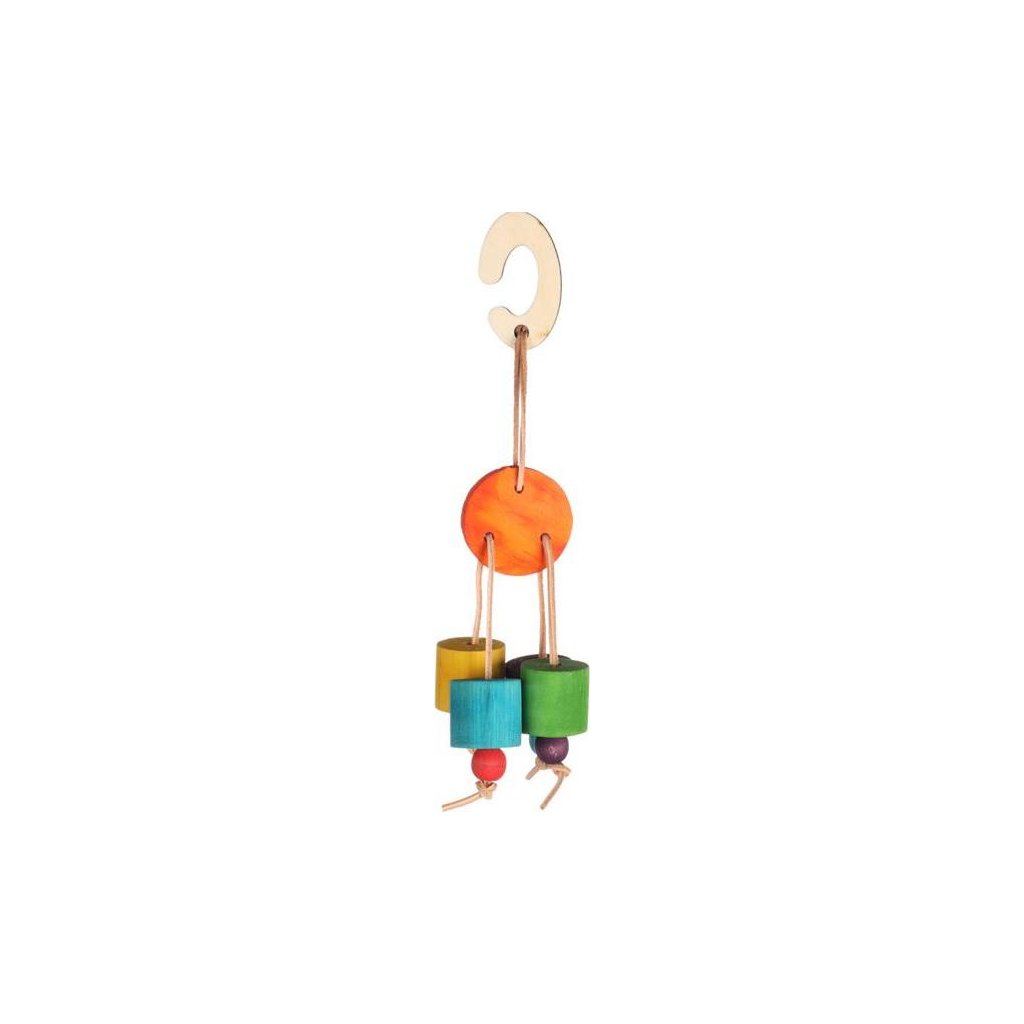 Flamingo Yalu Mix je dřevěná závěsná hračka pro drobné savce všeho druhu. Uspokojí jejich zvědavost, zažene nudu a pomůže je udržet v dobré fyzické i psychické kondici. Je vhodná i k okusování – hlodavým mazlíčkům napomáhá v obrušování zubů. Na kožených provázcích jsou navěšeny rozmanité různobarevné tvary ze dřeva (korálky, válečky, kolečko). Hračku snadno připnete ke kleci pomocí dřevěného háčku. Obsahuje zdravotně nezávadné barvy.