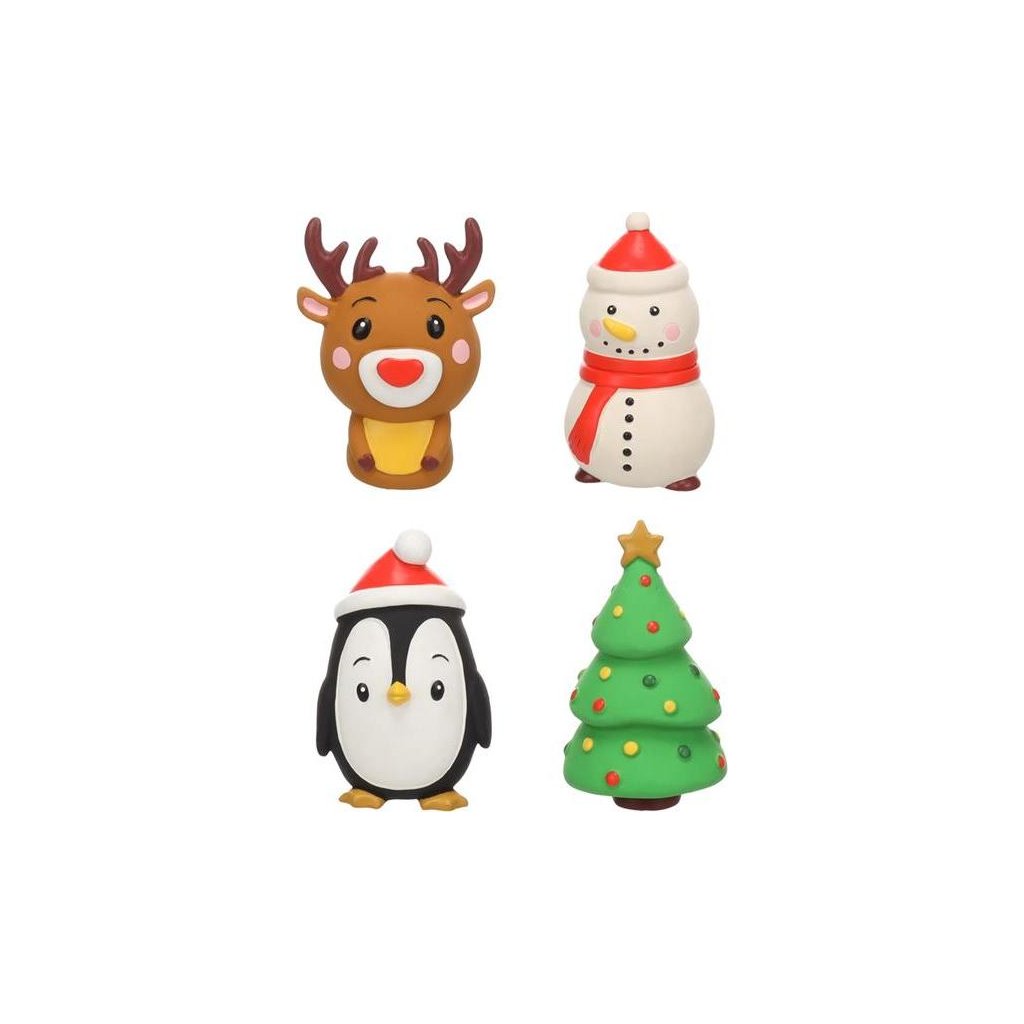Hračka pro psy ve tvaru soba, sněhuláka, tučňáka nebo vánočního stromečku je vyrobena z latexu. Pro větší potěšení ze hry obsahuje pískátko.
