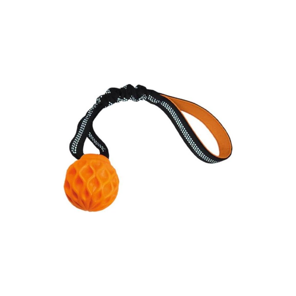 Tento míček je ideální pro psy, kteří milují plavání a aportování. Je vyrobený z vysoce odolné, a přitom lehké TPR gumy, má výraznou barvu, aby byl dobře vidět na hladině, a je na něj navázané polstrované, elastické poutko usnadňující házení. Hračka je díky tomu vhodná k vodním hrátkám i ke kousání. Při žvýkání pomáhá čistit zuby a masíruje dásně, čímž podporuje zdraví ústní dutiny. Není určená k přetahování.