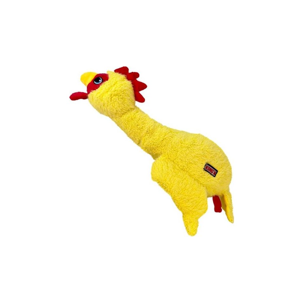Hračka KONG Scruffs Chicken pro psy je skvělým parťákem pro chvíle zábavy i odpočinku. Plyšová slepice má dlouhý krk s jedinečně tvarovaným „superpískátkem“, který psa motivuje ke kousání, lomcování i aportování. Měkké plyšové tělo je ideální na mazlení, zatímco prodloužený krk se skvěle drží v tlamě – perfektní pro psy, kteří rádi nosí své hračky všude s sebou.