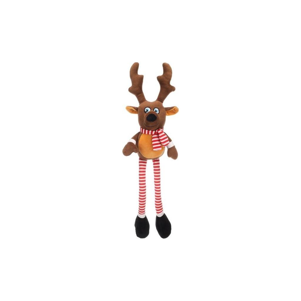 Vánoční hračka pro psy ve tvaru soba s pruhovanou šálou a dlouhým nohama je vyrobena z hebkého plyše. Pro větší potěšení ze hry obsahuje sob pískátko.
