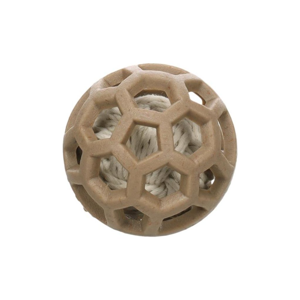 Hračka pro psy ve tvaru míče je vyrobená z termoplastické gumy (TPR) s bambusovým vláknem. Při kousání masíruje dásně a pomáhá omezovat tvorbu zubního plaku, čímž přispívá k přirozené péči o chrup. Pro větší vzrušení ze hry je uvnitř hračky další, menší míček. Díky děrované konstrukci je míč vhodný i pro psy se ztíženým dýcháním (brachycefalická plemena apod.).