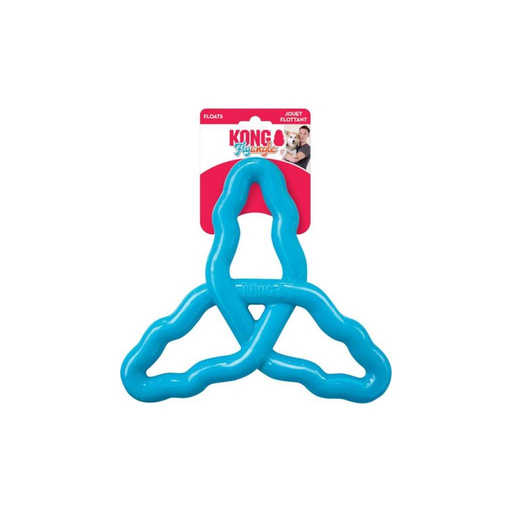 KONG Flyangle je interaktivní gumová hračka pro psy, která vypadá jako barevná propletená, zvlněná trojcípá hvězda. Její tři cípy slouží jednak jako rukojeti a úchopové body při vzájemném přetahování nebo aportování, ale současně zajištují, že se hračka při svém dopadu nepravidelně odráží. To udržuje vašeho psa ve vzrušeném napětí, tříbí se jeho smysly a zvyšuje se chuť k další hře. Hračka je vyrobena z velmi odolného materiálu, který je zárukou nekonečně dlouhé zábavy. Je pružná a šetrná k zubům i dásním. Má mnohostranné využití, lze s ní trénovat i aportování z vody, protože se nepotápí, ale pluje na hladině. Konstrukci se třemi rukojeťmi využijete při vzájemné skupinové psí hře. Vyhovuje psům středních a velkých plemen.