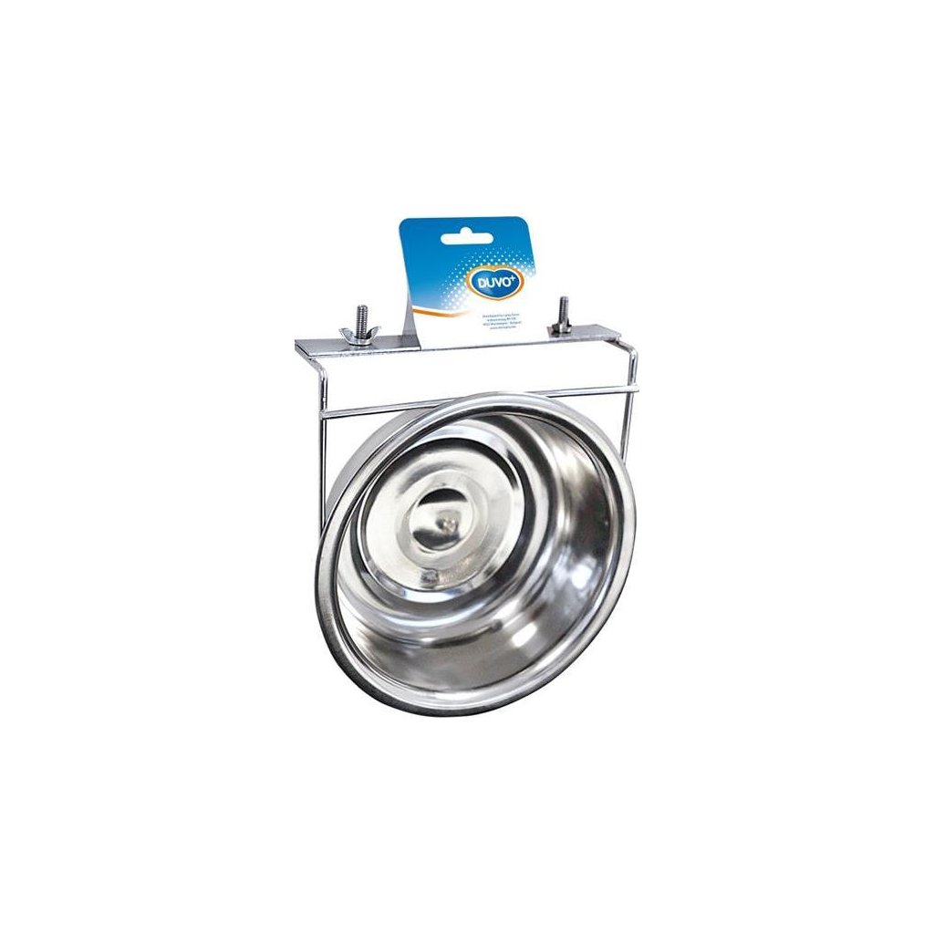 Nerezová miska se závěsem na dva šrouby je vhodná do klecí, voliér či transportních klecí.
