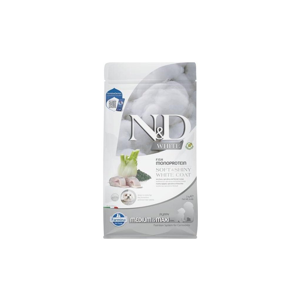 N&D WHITE Dog GF Sea Bass, Spirulina & Fennel Puppy Medium & Maxi 2 kg