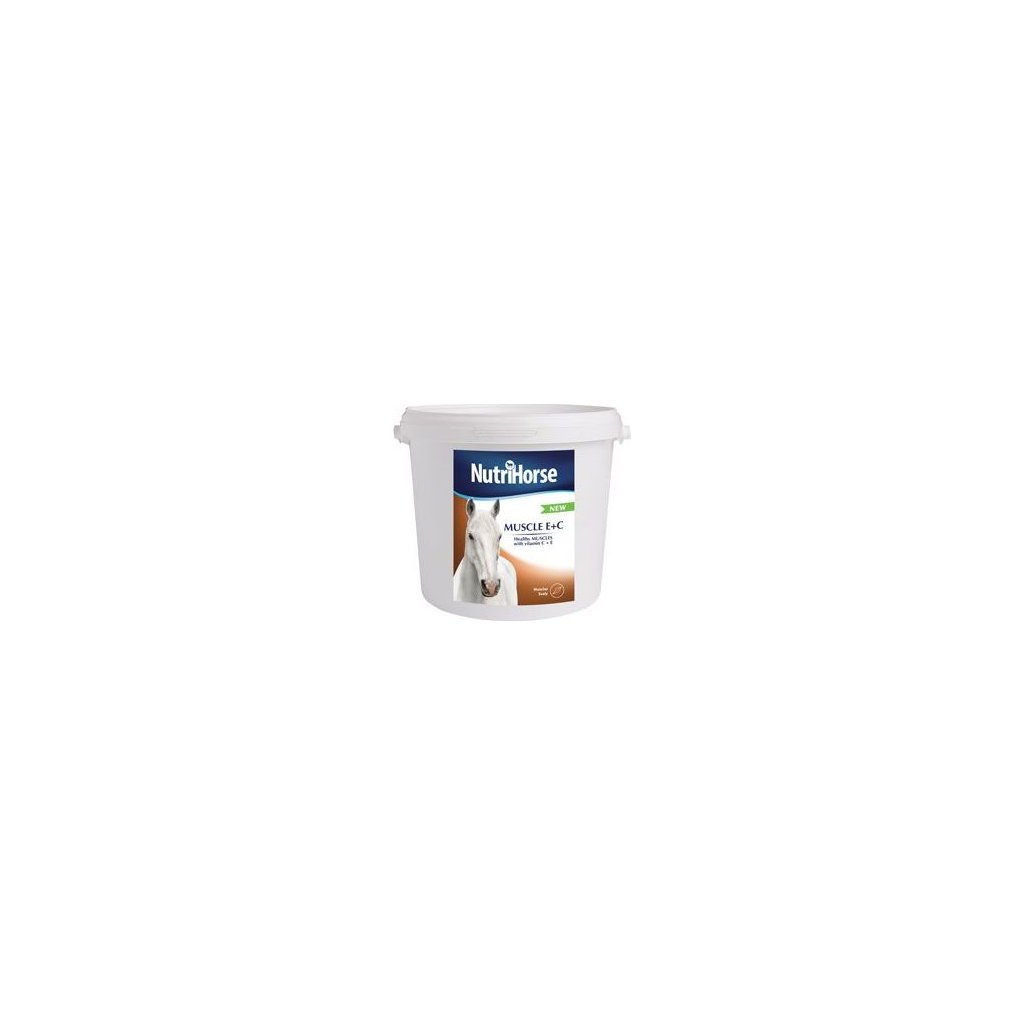 MUSCLE E+C je doplňkové krmivo složené ze směsi antioxidantů (vitamin E a vitamin C), selenu a betainu pro udržení zdravých svalů. Usnadňuje správnou eliminaci volných radikálů (nebezpečné odpadní produkty látkové výměny vyvolávající oxidační stres a mající toxický účinek na tělo) zlepšením svalového tonusu a hbitosti. Muscle E+C pomáhá koním snášet delší námahu a oddaluje svalovou únavu. Selen, společně s vitamínem E, jsou důležitými látkami pro správný vývoj a funkci svalů. Přítomný extrakt z kurkumy (Curcuma longa L.) svými protizánětlivými a antioxidačními účinky podporuje imunitní systém. MUSCLE E+C se doporučuje podávat během intenzivního tréninku a v soutěžních dnech.