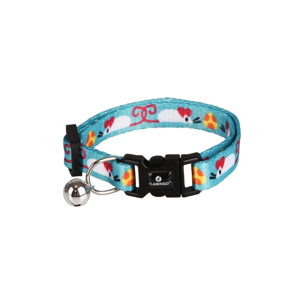 Nylonový obojek Flamingo Arwen je vhodný pro koťata všech plemen. Má nastavitelnou délku a zapíná se na bezpečnostní plastovou karabinu. Obojek je opatřený rolničkou, která upozorní ptáky na přítomnost kočičího predátora.
