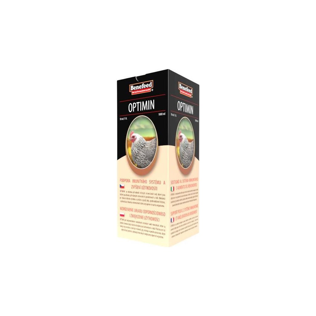 Doplňkové krmivo pro drůbež, které podpoří imunitní systém a zvýší užitkovost zvěře. Optimin je výborným doplňkem výživy zvířat v zajetí, která nemohou využít přirozeného výběru potravy dle aktuálních potřeb jejich organismu, které se navíc mění např. s věkem, požadavkem na vysokou užitkovost apod. Minerální látky jsou ve formě, která zajistí maximální účinnost každého prvku tak, aby došlo k vyrovnání hladiny jednotlivých prvků v organismu. Optimální hladina všech prvků v organismu je mimo jiné zcela nezbytným předpokladem pro vysokou obranyschopnost a odolnost organismu např. proti infekčním a virovým chorobám.