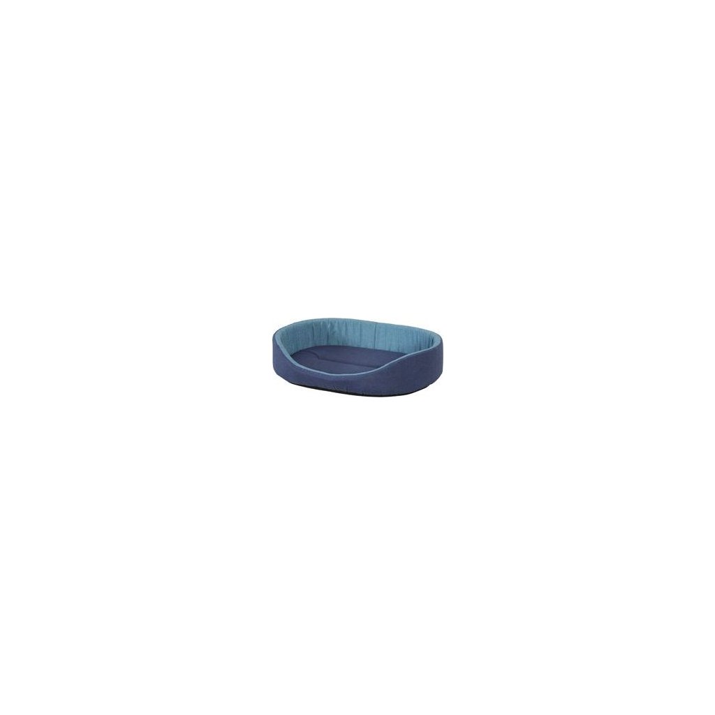Komfortní oválný pelech v elegantních odstínech modré, se sníženým předním okrajem.