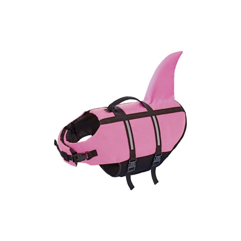 Záchranná plovací vesta pro psy s vtipnou žraločí ploutví a reflexními pruhy pro lepší viditelnost. Má rychle a snadno nastavitelné zapínání na krku a břiše. Díky anatomickému tvaru je při nošení pohodlná. Poskytuje ochranu při hrách a sportech ve vodě, výletech na lodi apod.