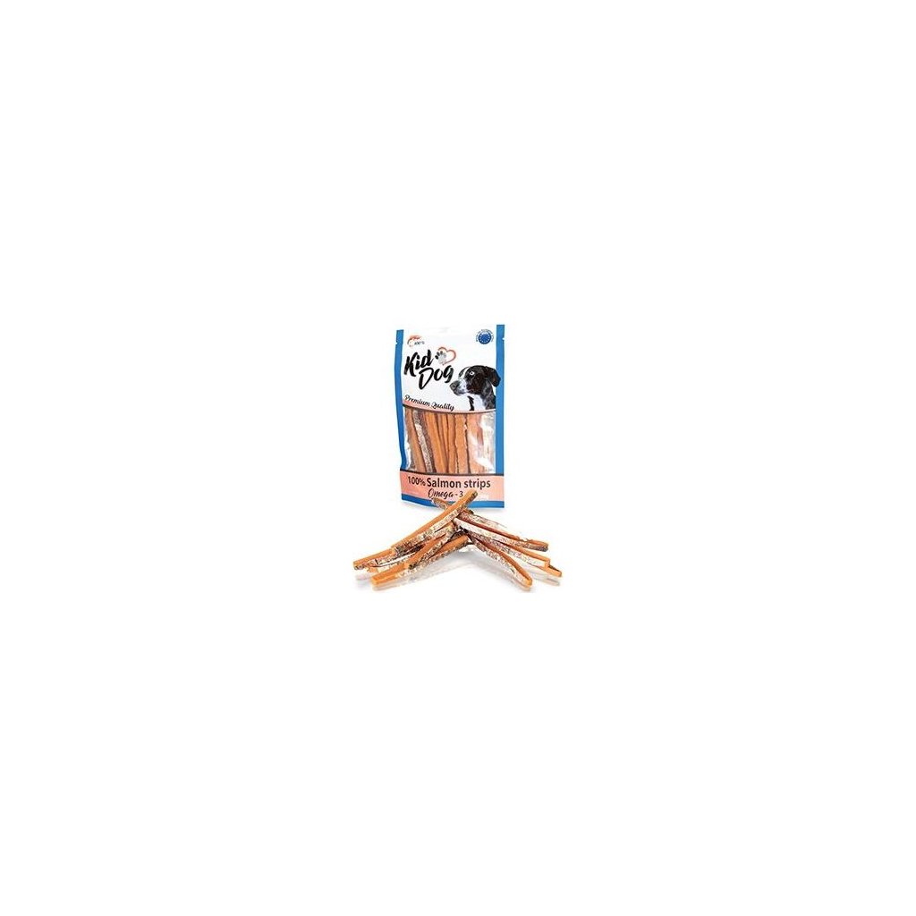 KIDDOG doplňkové krmivo, masová pochoutka pro psy, 100% losos v proužku.