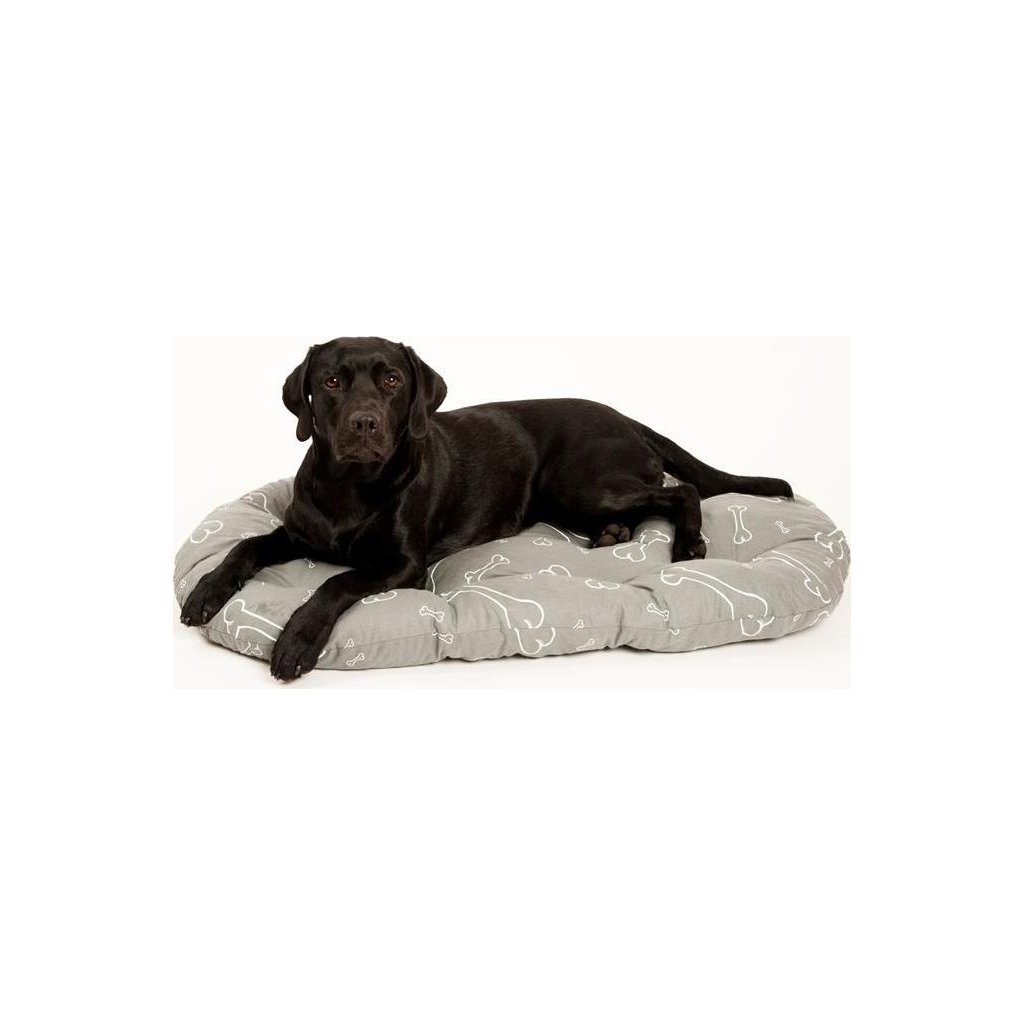 Pohodlný a kvalitní polštář vyrobený z bavlněné látky potištěné kostmi a kostičkami, vyplněný drceným molitanem. Polštář je v několika bodech prošitý, aby nedošlo k nerovnoměrnému rozmístění výplně.