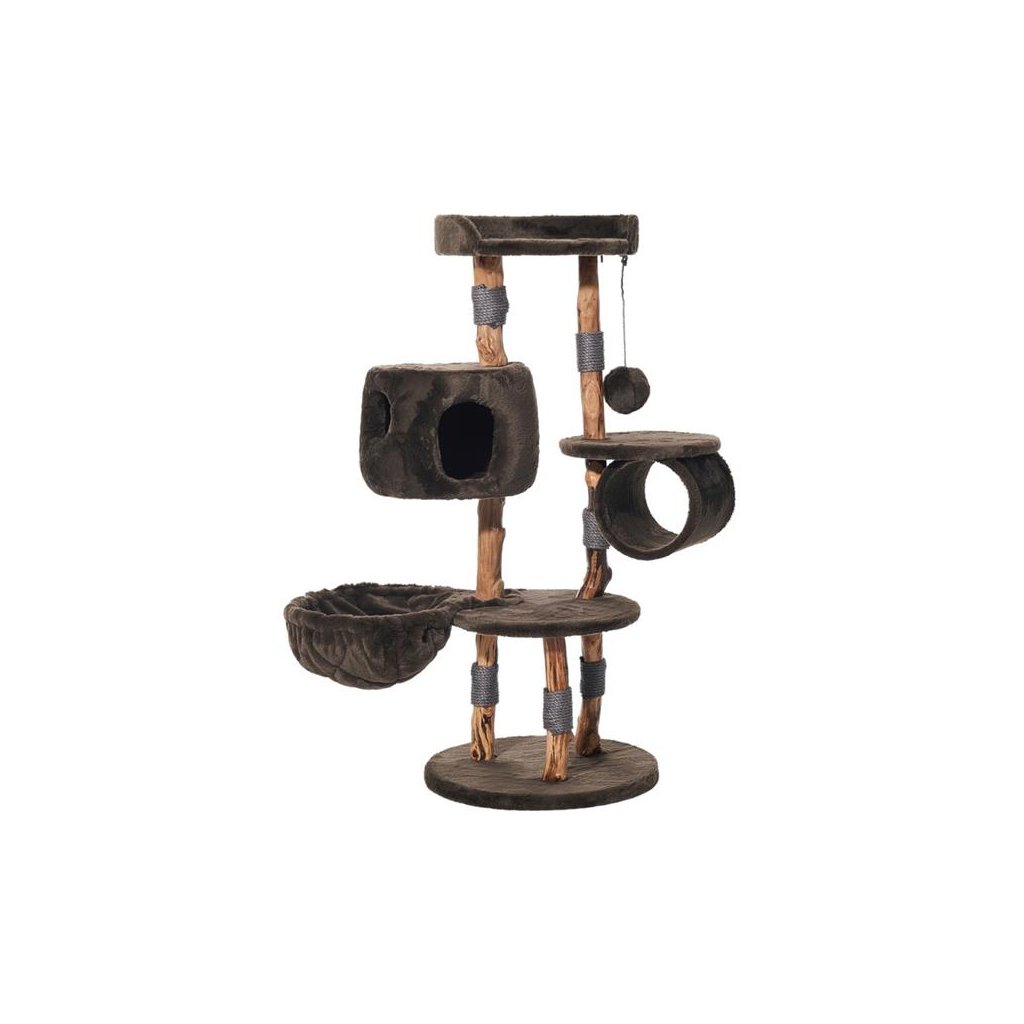 Kvalitní škrabadlo Nobby Gena nabízí kočkám dostatek prostoru pro škrábání, zábavu i odpočinek. Kočičí strom je potažený hebkým plyšem a má kmeny z masivního, přirozeně rostlého hruškového dřeva ovinuté jutovým provazem. Součástí stromu jsou také odpočívadla, domeček s pohodlným polštářkem, tunel, kruhový průvěs, vyhlídka a zavěšený míček na hraní. Škrabadlo je vhodné i do domácností s více kočkami.