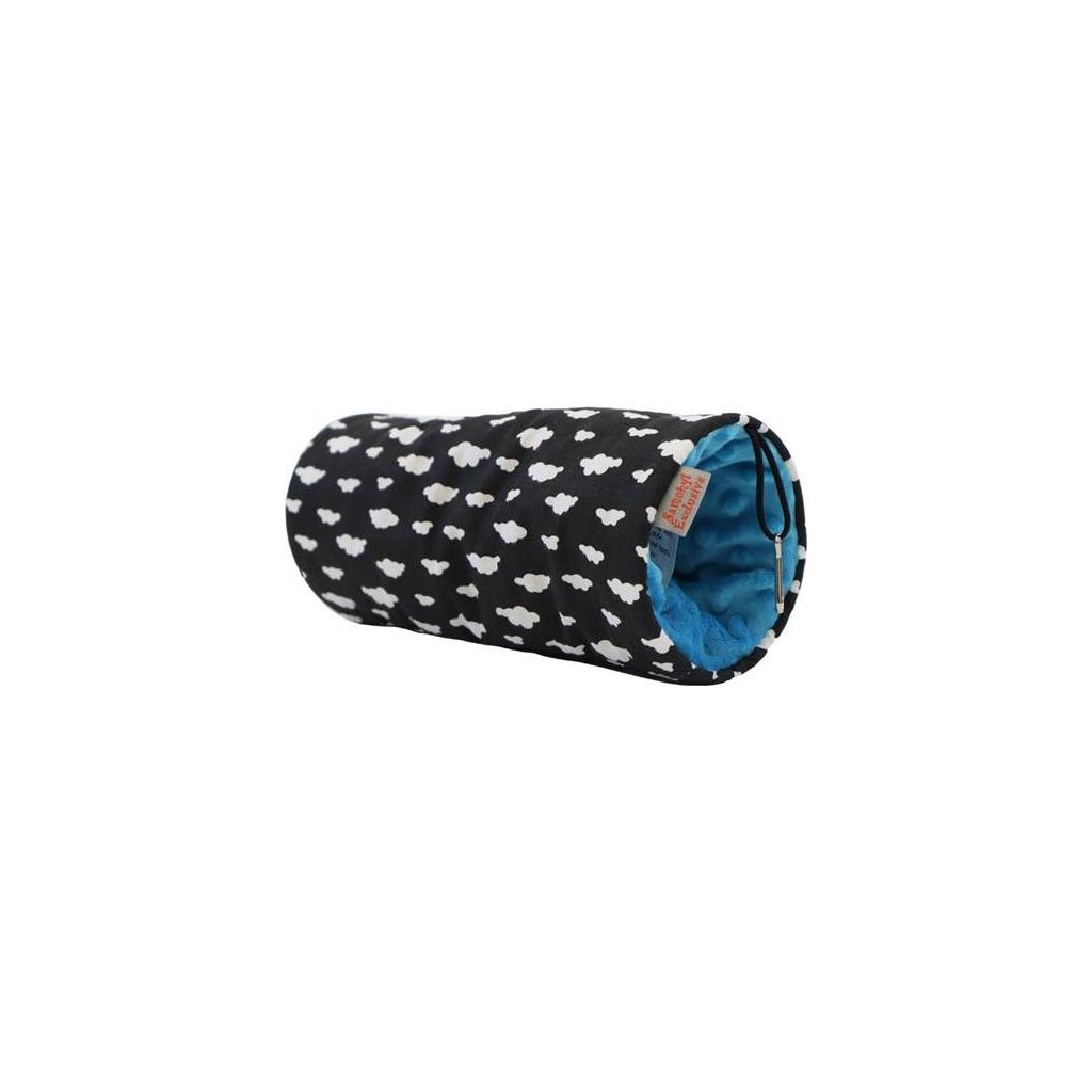 Tunel dr.savec závěsný M, černobílé mráčky, tyrkysová minky 10x10x25cm