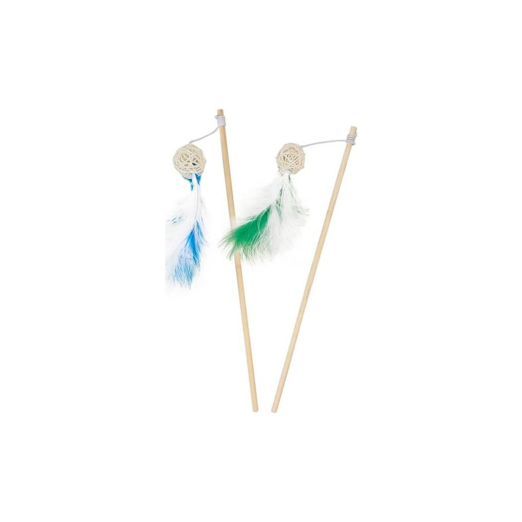 Vábnička s ratanovým míčkem a pestrobarevnými peříčky je skvělým nástrojem pro rozvoj loveckého instinktu a podporu zdravého pohybu. Ratanový míček s pírky zavěšený na provázku zajistí vaší kočce dlouhé minuty zábavy.