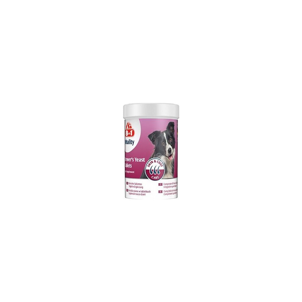 Tablety 8v1 Brewer's Yeast jsou perfektní jako denní doplněk a pomáhají podporovat zdravou pokožku a lesklou srst. Jsou bohaté na vitamíny B-komplex, česnek, omega-3 mastné kyseliny a speciálně vyvážené vitamíny a minerály. Vyvinuto ve spolupráci s veterináři, 8v1 Tablety pivovarské kvasnice neobsahují umělá barviva a konzervační látky. Oni jsou perfektní doplněk stravy vašeho psa. Tento kvalitní doplněk stravy je vyroben v Německu.
