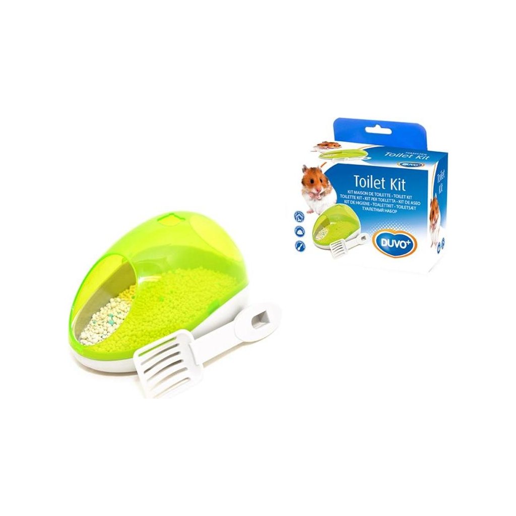 Toaleta: Křečci i další drobní hlodavci často vykonávají svou potřebu na jednom místě. Použití toalety s vhodnou savou podestýlkou a její umístění na „toto“ místo zvýší hygienu v ubikaci. Toaletu je třeba pravidelně čistit. Jednat pomocí lopatky, která je součástí balení, tak výměnou celé podestýlky a vymytí toalety.