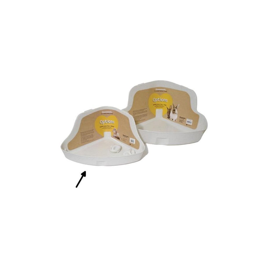 Praktické umístění do rohu klece, kam zvířata většinou vykonání potřeby směřují.
