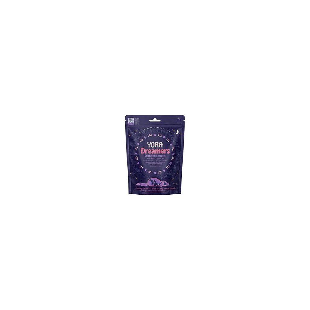 Pamlsky Yora Dreamers z hmyzího proteinu jsou jedinečné z mnoha důvodů. Hmyzí moučka jemně zapečená s ovsem, cizrnovou moukou doplněná mučenkou, rmencem, kořenem kozlíku lékařského a meduňkou tvoří pamlsky, které zklidňují úzkostné psy. Složení pamlsků Yora Dreamers pomáhá psům také relaxovat před spaním nebo v situacích, kdy se cítí nervózní.