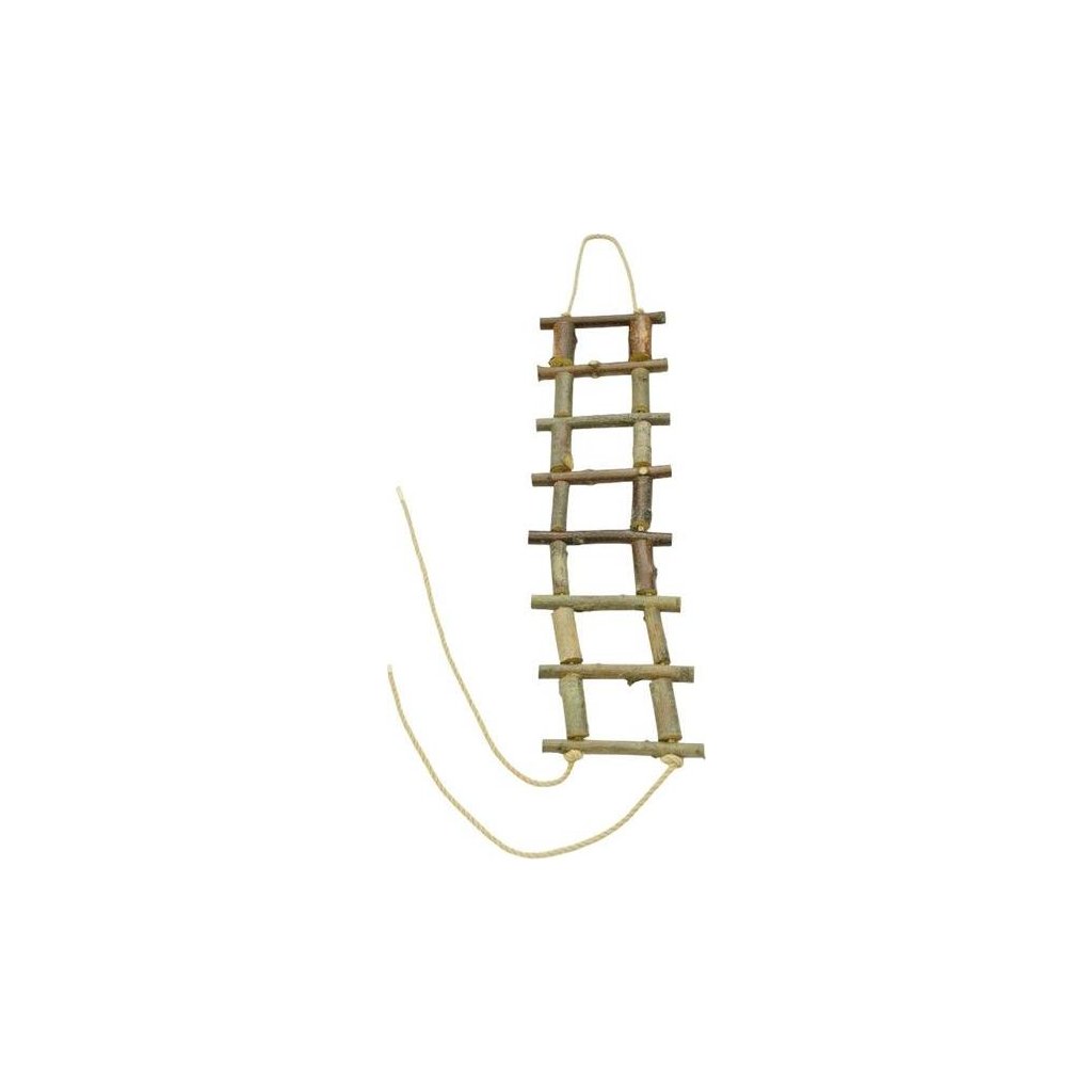 Provazový žebřík s příčkami z větví z tvrdšího dřeva. Použitím v ubikaci zajistíte zvířátku aktivní pohyb spojený se zábavou. Vhodný pro myšky, osmáky, potkany a činčily.
